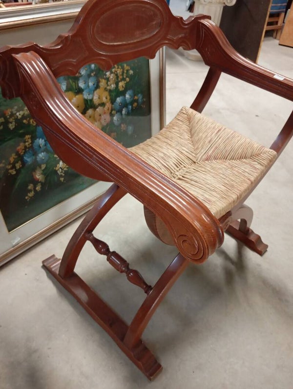 Savonara in legno seduta in paglia misure altezza 74 larghezza 68 profondità 51.