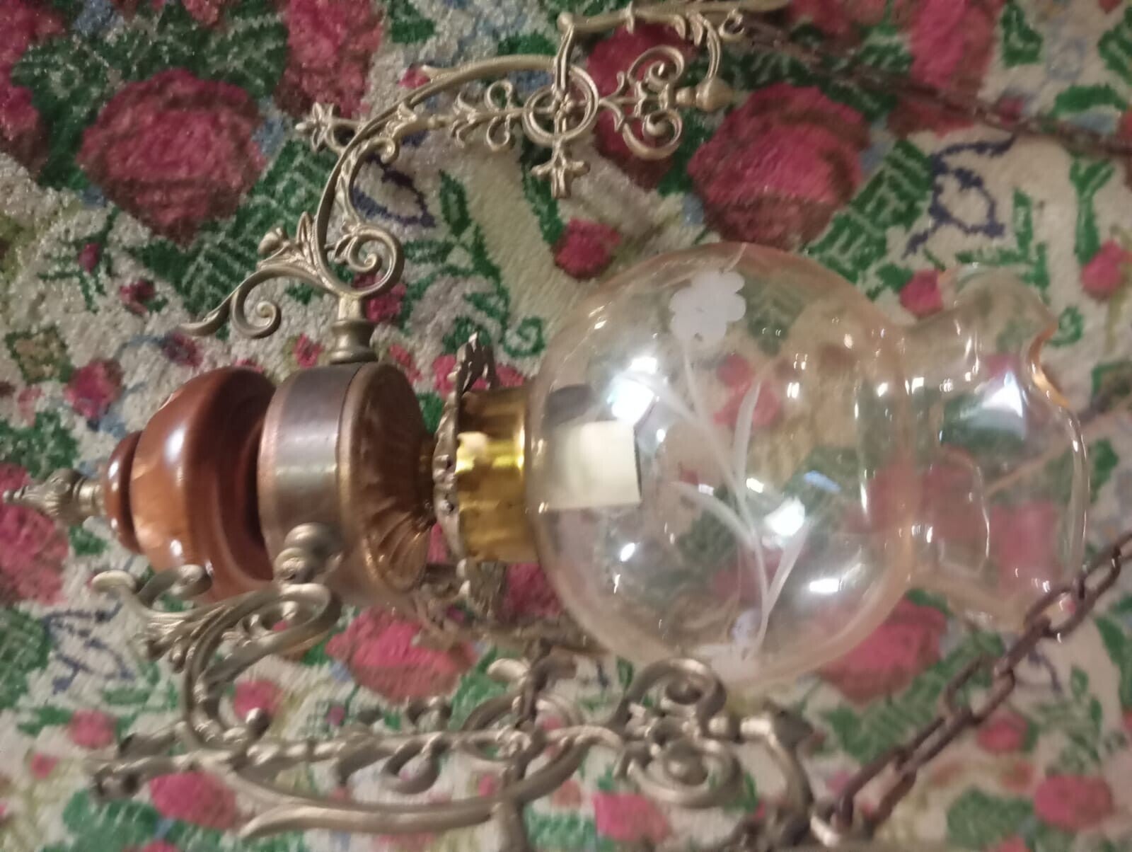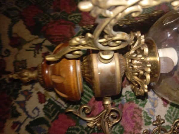 Lampadario metallo, ottone e opalina
