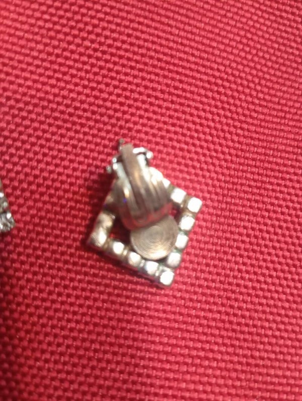 Coppia orecchini a rombo vintage con clips e zirconi incassati in tutta la lavorazione.