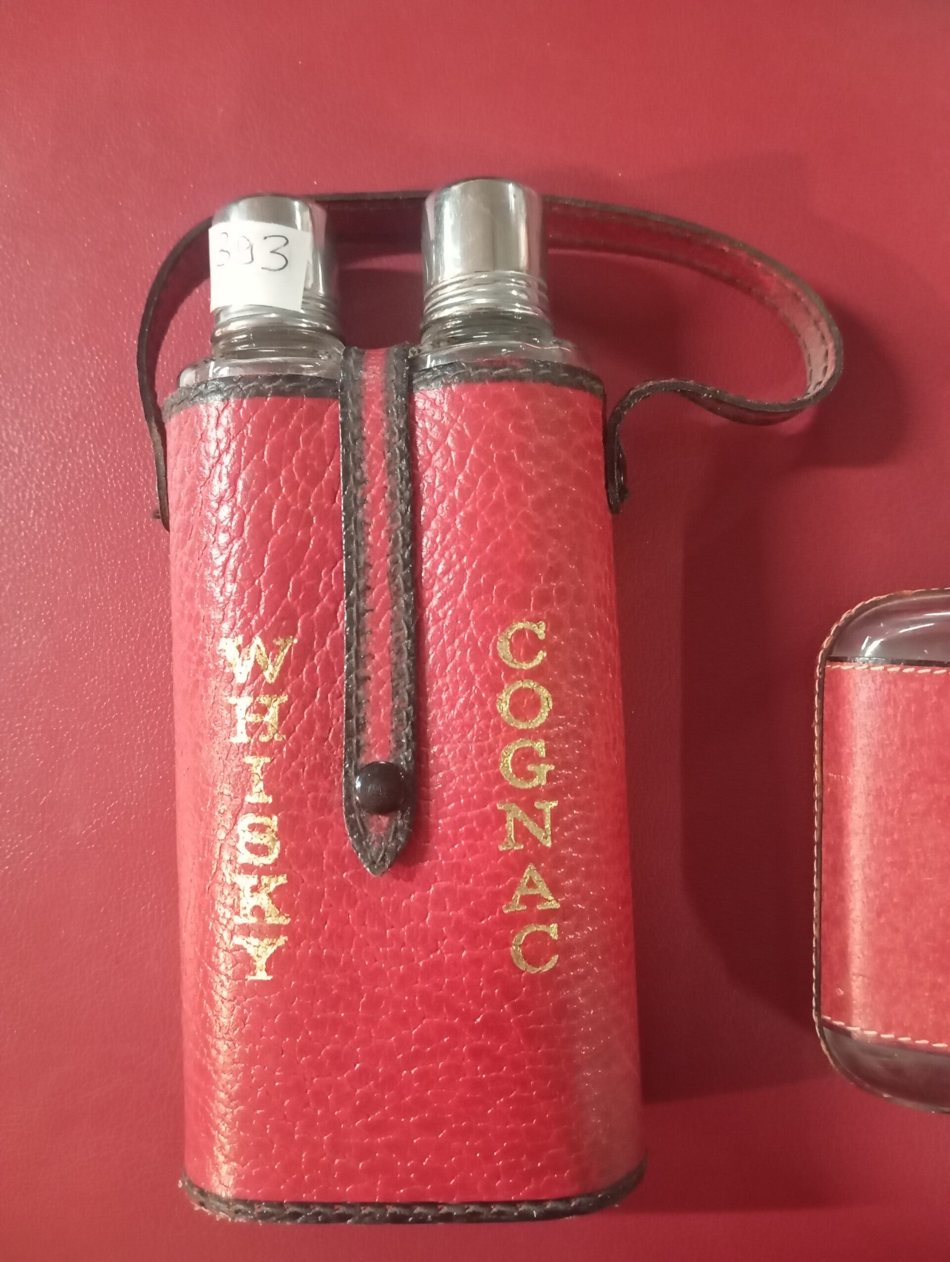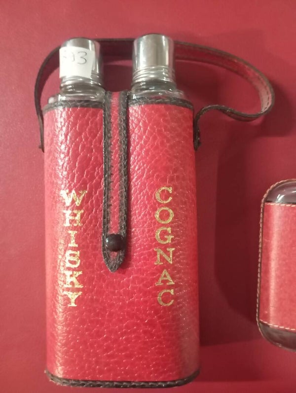 Set completo di n 3 boccette per liquore lavorazione in cuoio. Ottime condizioni pari al nuovo.