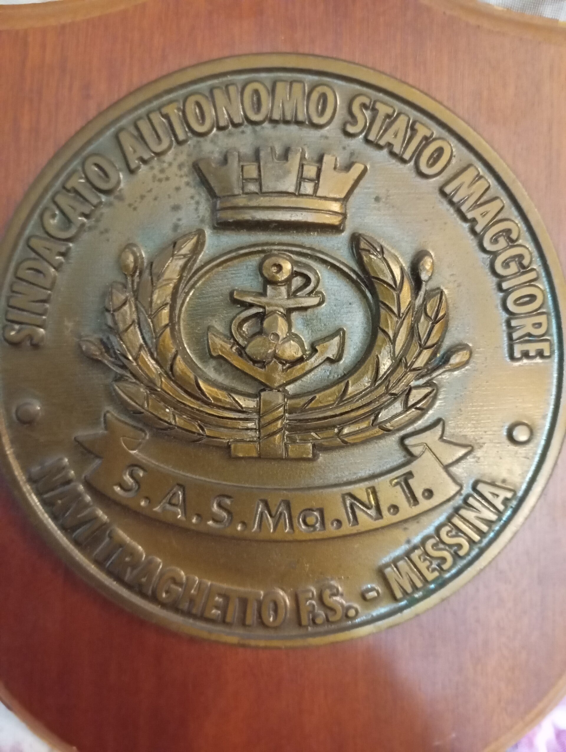 STEMMA S.A.S. navi traghetto, uno stemma su base legno a forma di scudo. Misure 27x19. Ottime condizioni pari al nuovo
