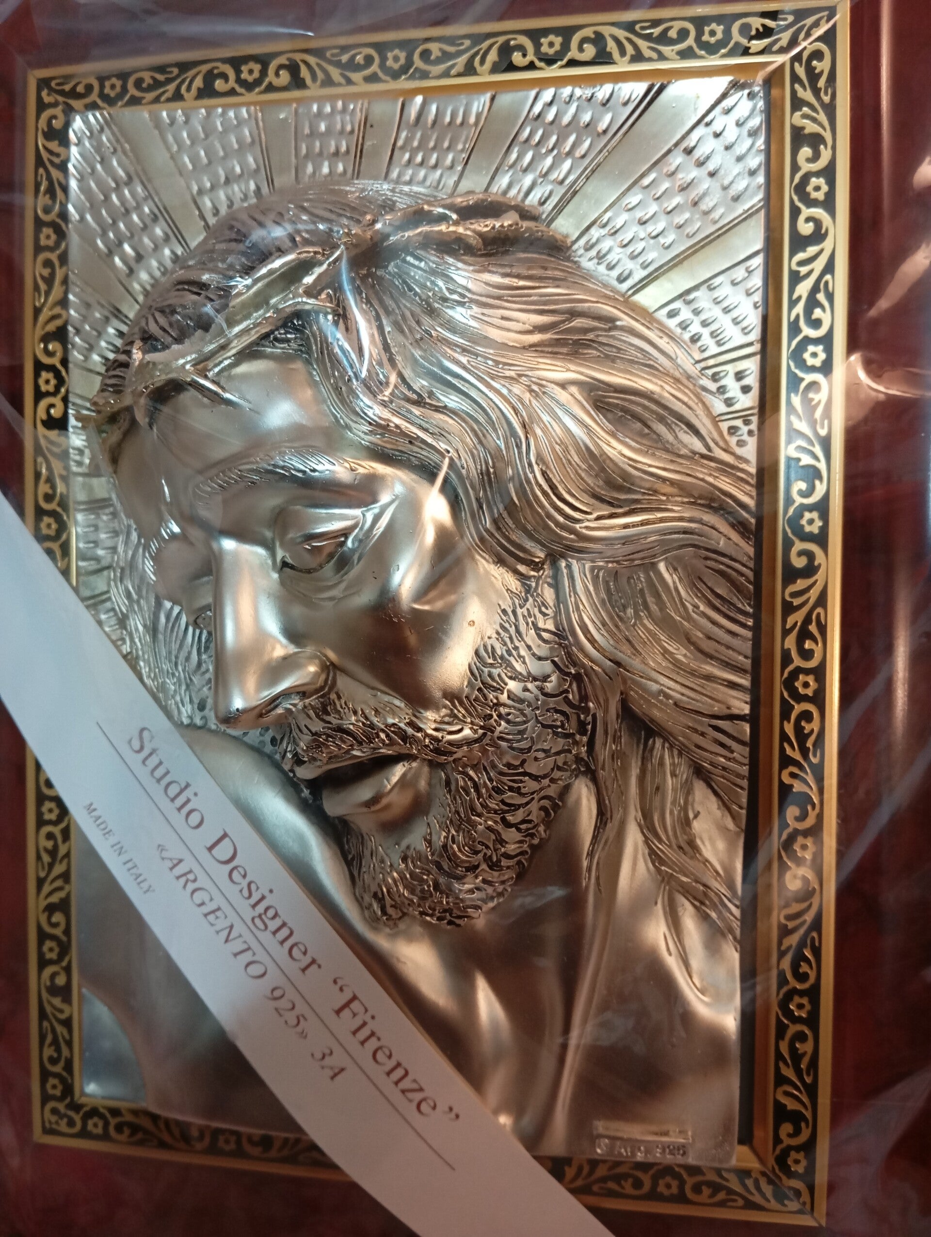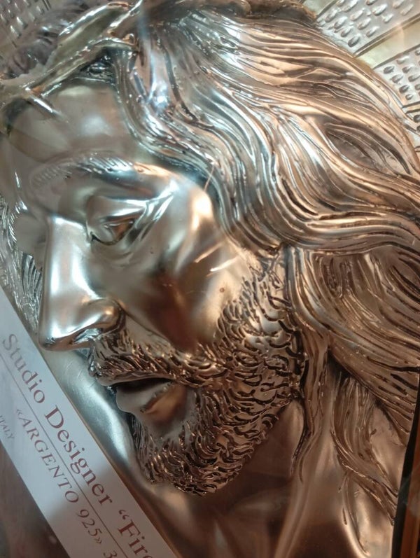Quadri studio Designer Firenze con effige di Gesù. Argento 925 made in Italy Cornice legno misure 40z32