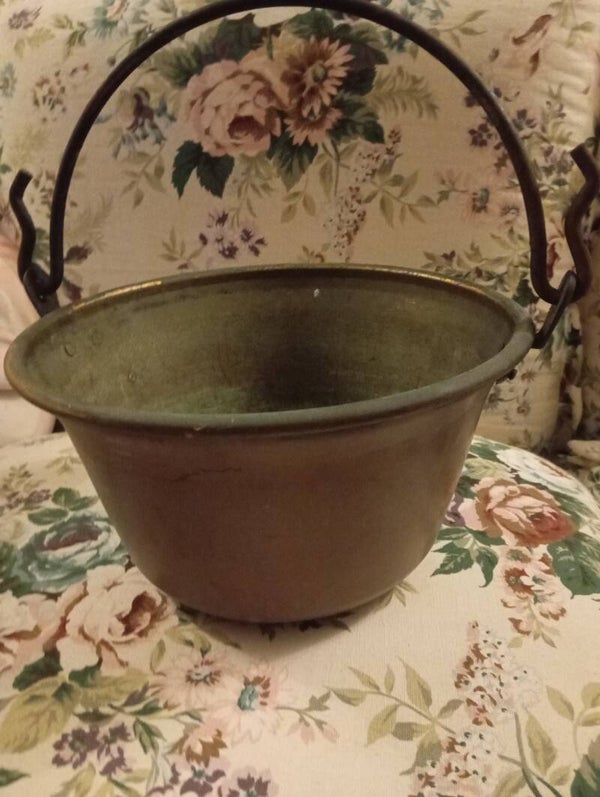 Calderone in rame con manico lavorato misura altezza ,16 diametro 29. Ottime condizioni