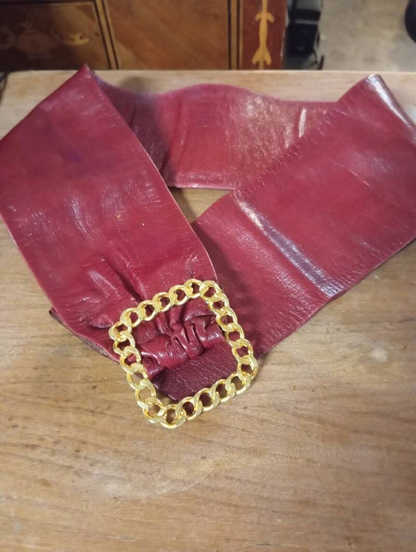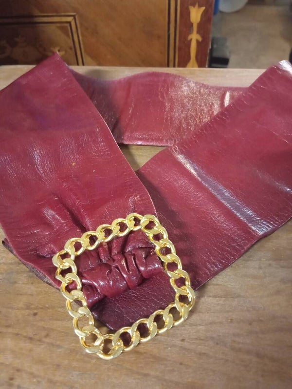 Splendida cinta vintage con una splendida fibia dorata lavorata misura lunghezza 90 cm. Ottime condizioni.