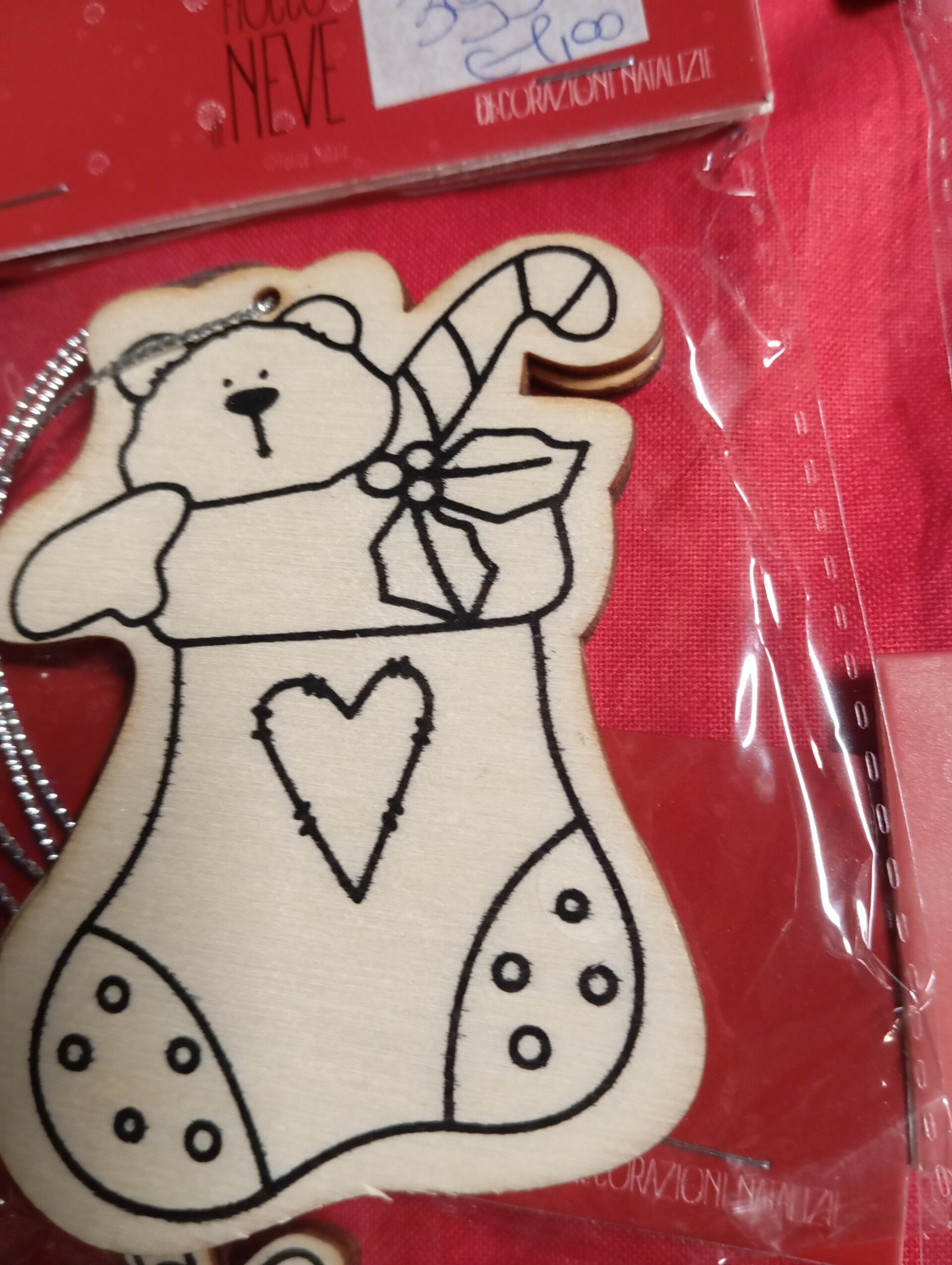Addobbo natalizio in confezione. Doppio appendino in legno.