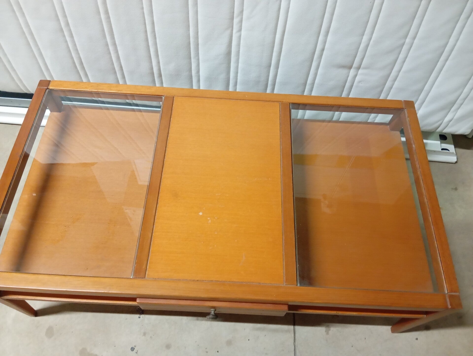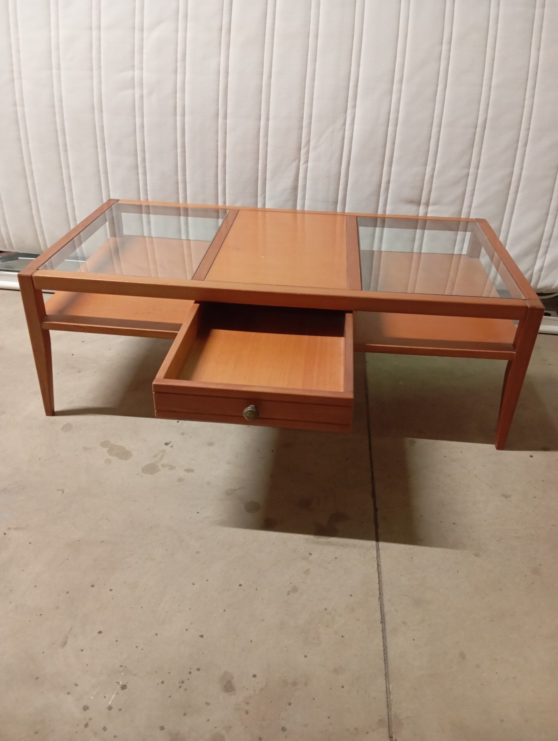 Tavolino in legno con cassetti e doppia base in vetro misure lunghezza 110 larghezza 60 altezZa 38