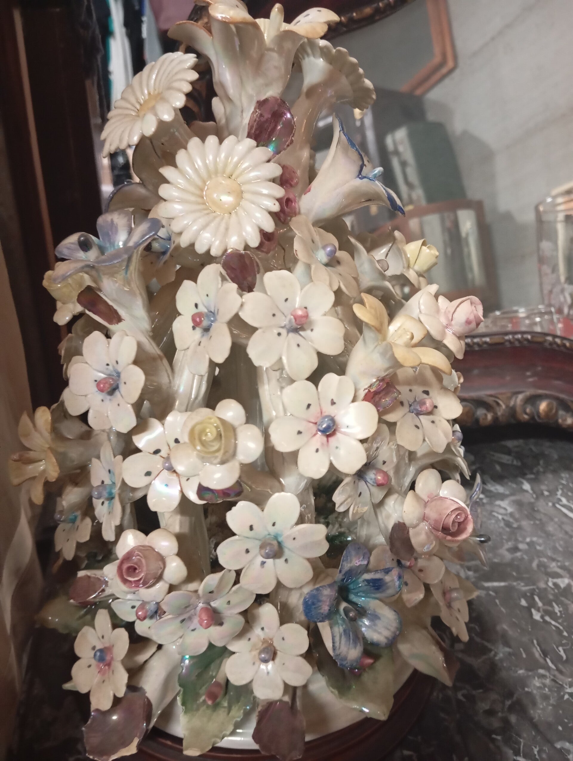 Splendido soprammobile lavorazione in ceramica base in legno.