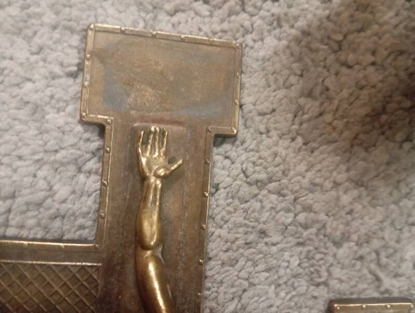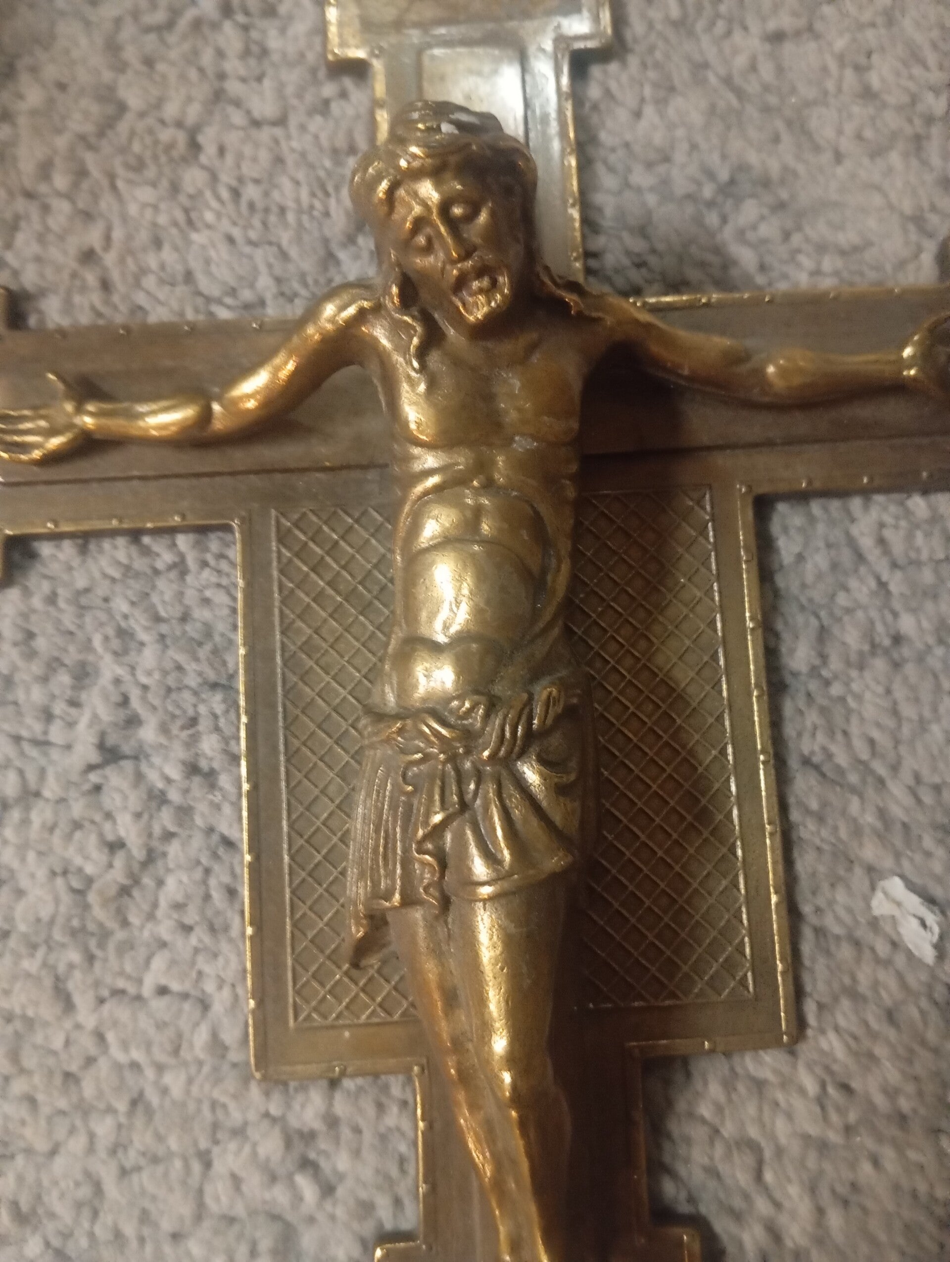 Croce in ottone, ottime condizioni mancano solo i 3 stemmi. Misure altezza 27 lunghezza 22. Ottime condizioni
