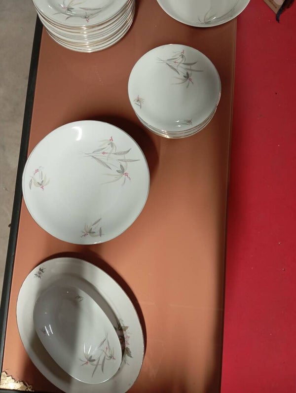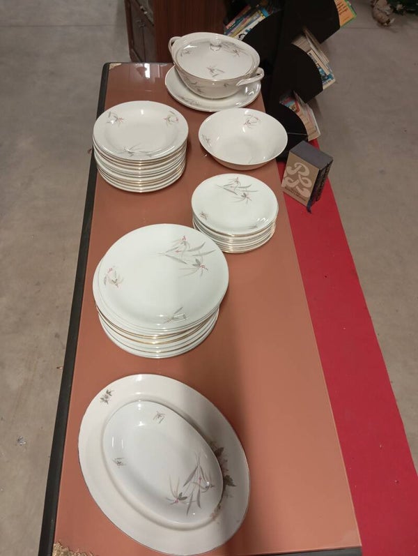 Servizio piatti Bavaria composto da n 12 piatti fondi n 12 piatti piani n 10 piatti frutta n 1 piatto ovale grande n 1 piatto ovale piccolo n 1 zuppiera n 1 piatto rotondo n 1 insalatiera ottime condizioni. Totale 39 pezzi