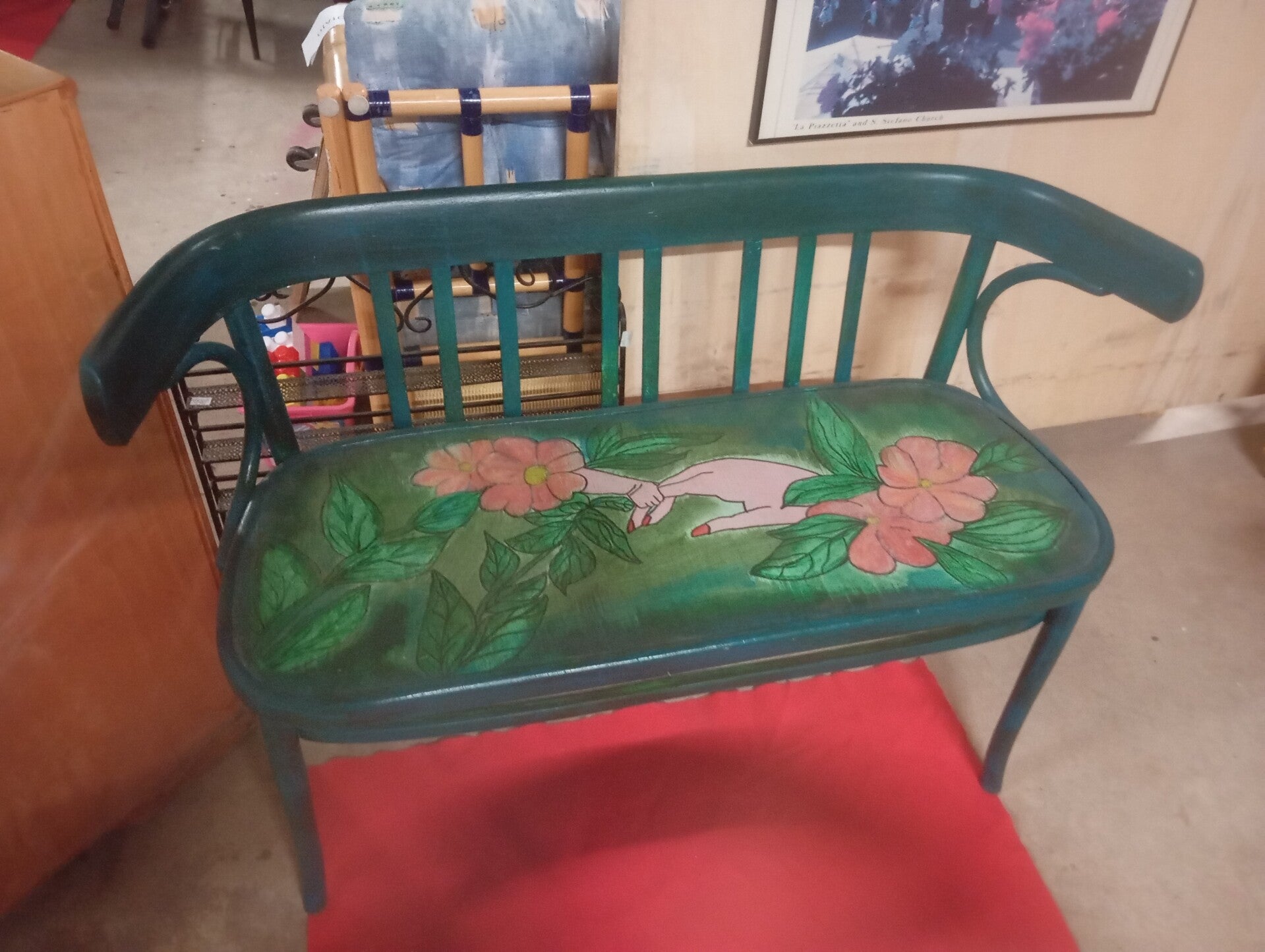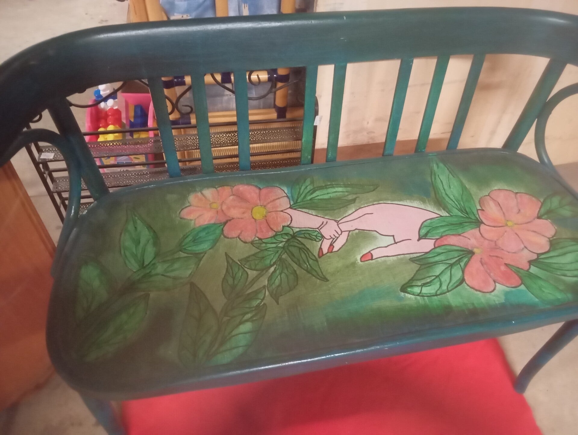 Panchina rivisitata a mano misure lunghezza 130 larghezza 47 altezza 80.