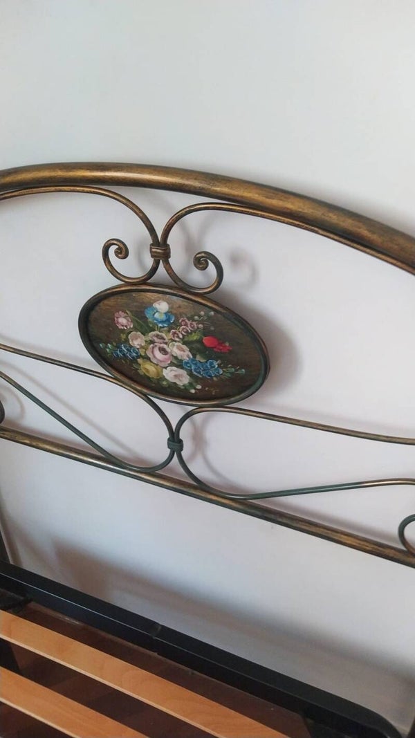 Letto in ferro battuto con una splendida lavorazione floreale misure lunghezza 2 metri altezZa 90 lunghezza 1mt.
