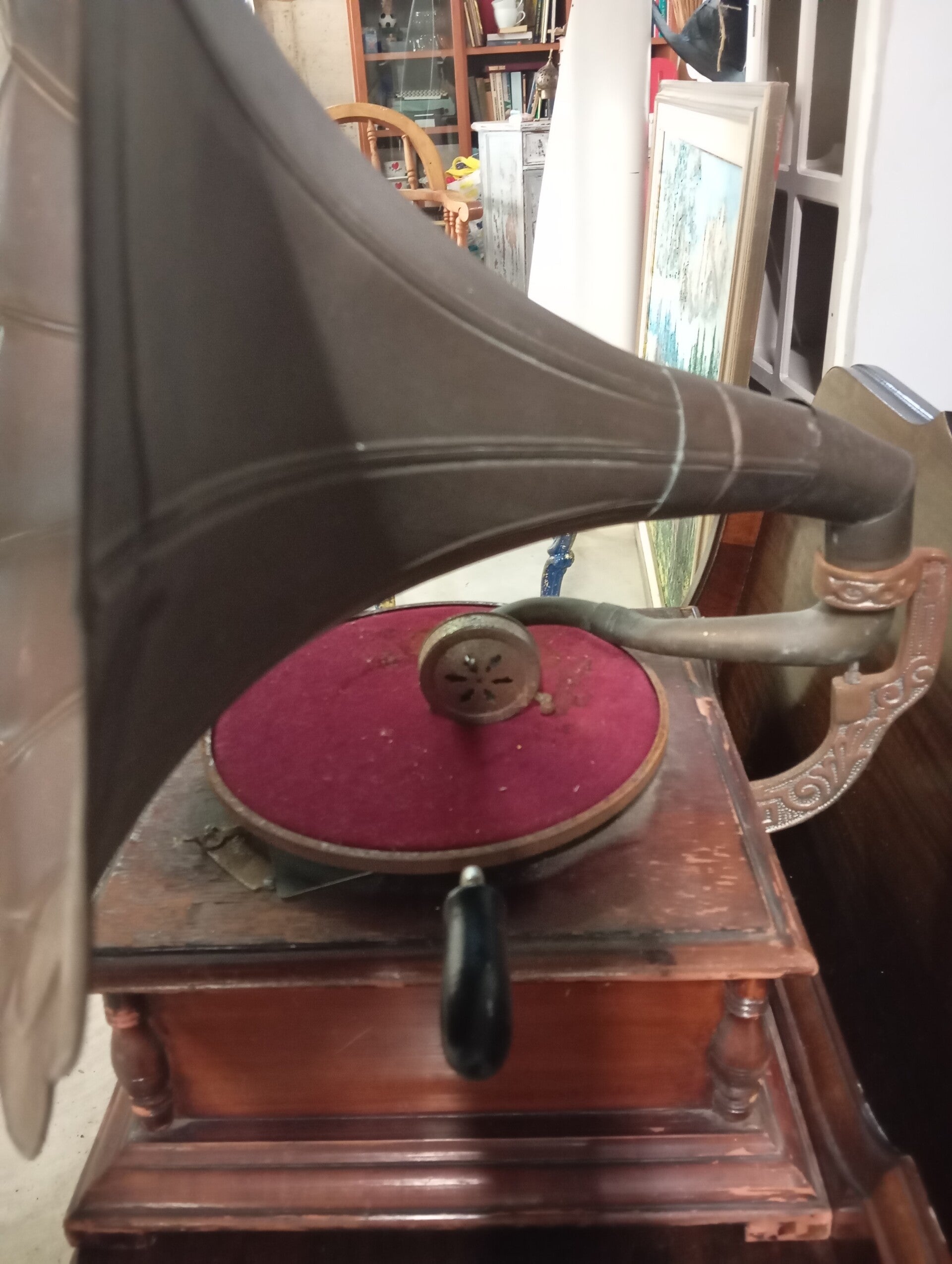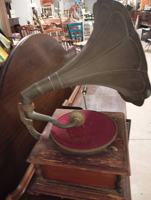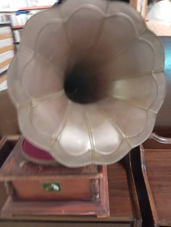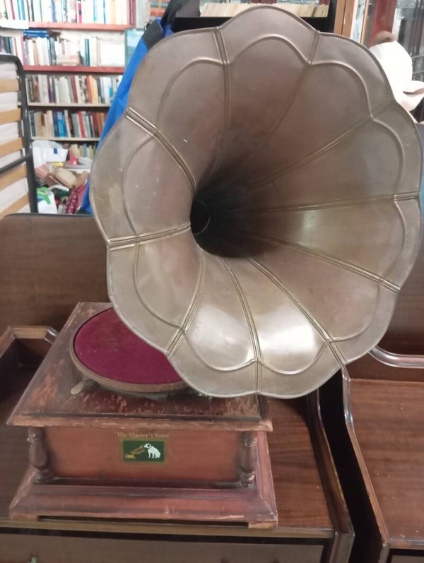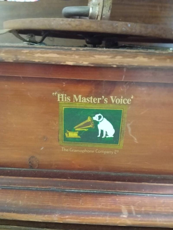 Gramofono vintage His Master s Voice buone condizioni, con iconio logo.